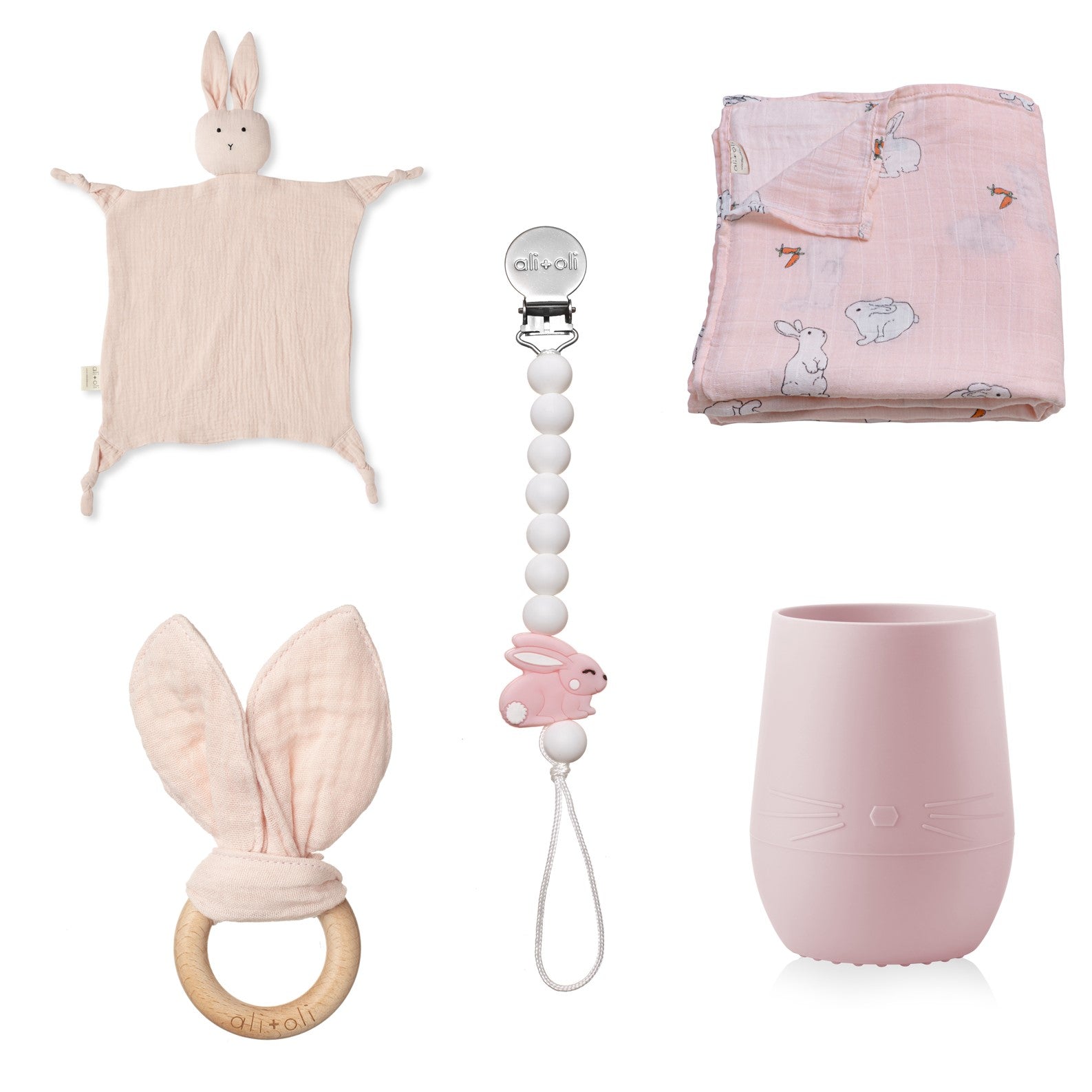 Embark on the enchanting journey of parenthood with our Easter Pink Shades gift box, a curated collection featuring five irresistibly cute bunny-themed baby essentials in delightful hues of pink. Whether celebrating baby showers, birthdays, or any special occasion, our pre-made collection is designed to infuse joy into every moment. Each item is crafted with the utmost care and superior quality, ensuring both style and comfort for your little one. The Easter Pink Shades gift box is a thoughtful and convenient way to gift precious memories, making it the perfect choice for new parents or anyone looking to share in the magic of babyhood