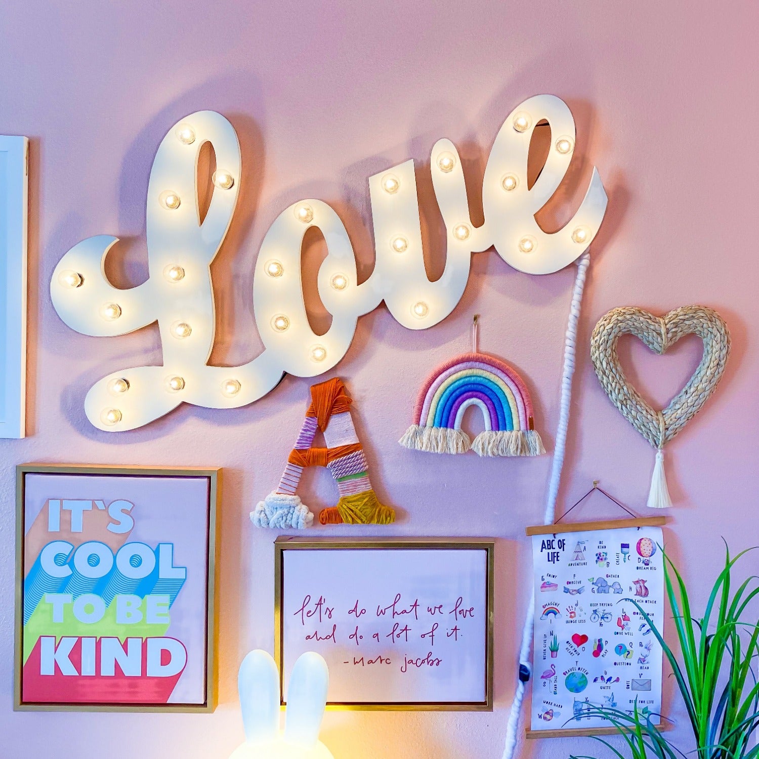 This Ali+Oli Macrame Boho wall decor is an ideal addition to any nursery, children's bedroom, or guestroom. The handmade design features a vibrant candy color, making it perfect for any room that needs a splash of color and liveliness. The piece is made from durable materials, so it will last for many years to come. This wall decor can be a great addition to any girl or boy's room, as well as a unique piece for any boho themed décor. It is the perfect size, measuring approximately 20" L x 15" W, so it won't overpower the room. The beautiful rainbow colors make it a great choice to add a cheerful and cheerful touch to any nursery.