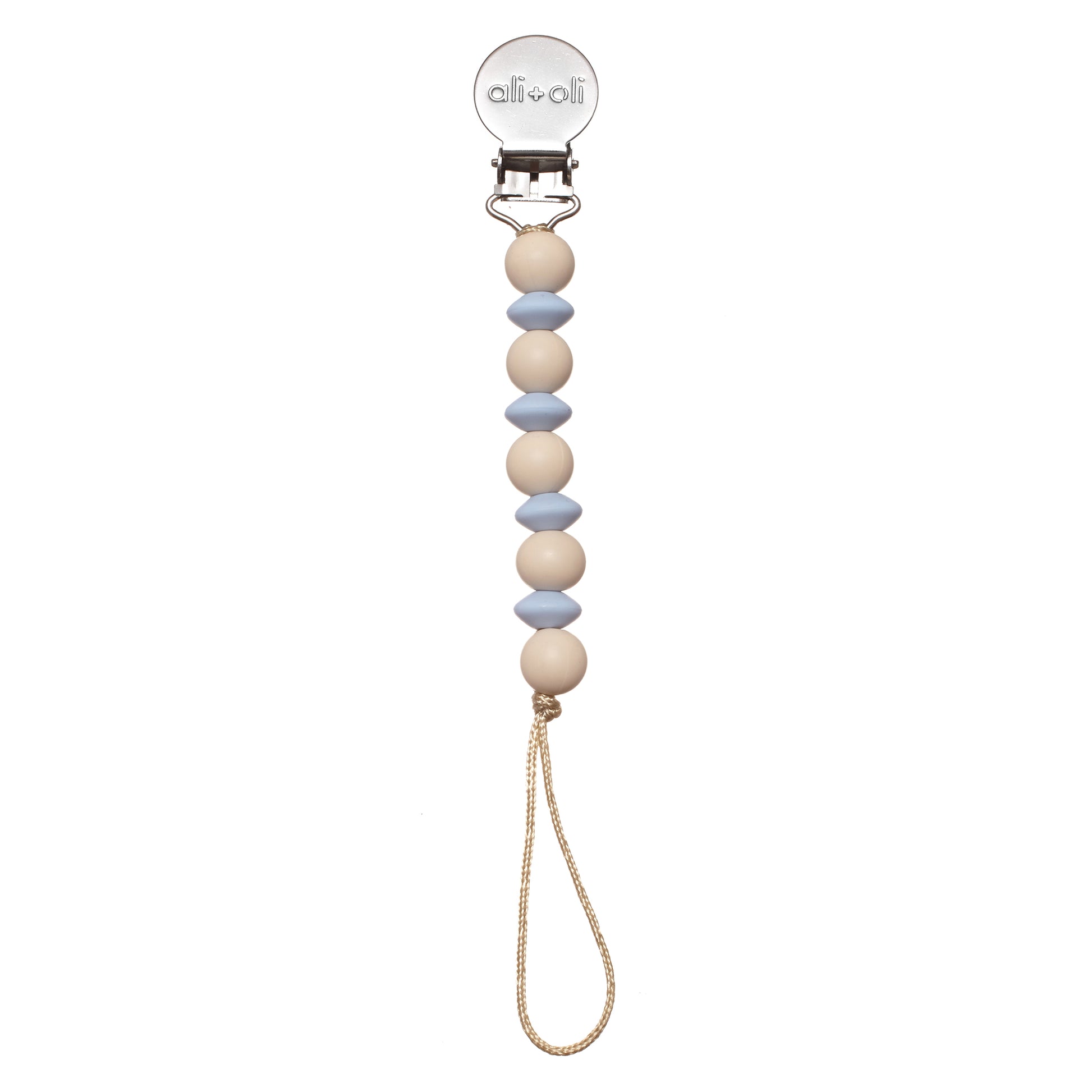 Ali+Oli silicone beaded pacifier clips are made from 100% BPA Free Food-grade silicone and feature a sturdy rust free stainless steel clasp that keep your little one's pacifier or teething toys close by.