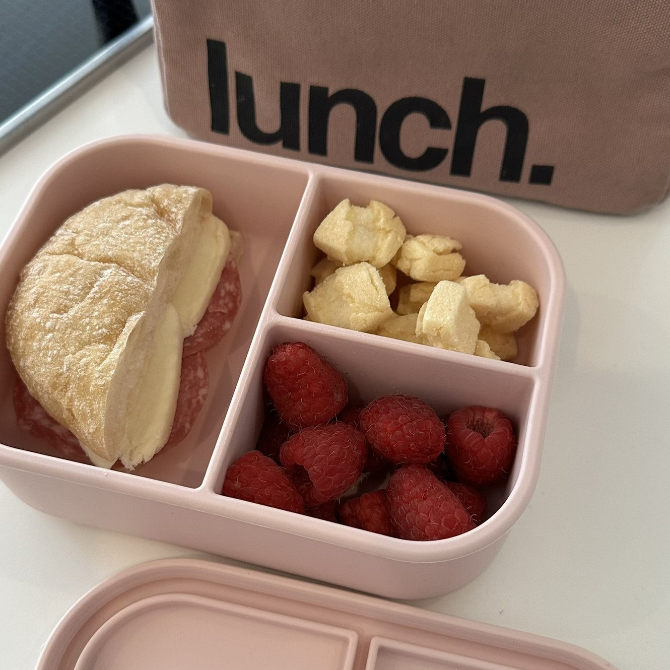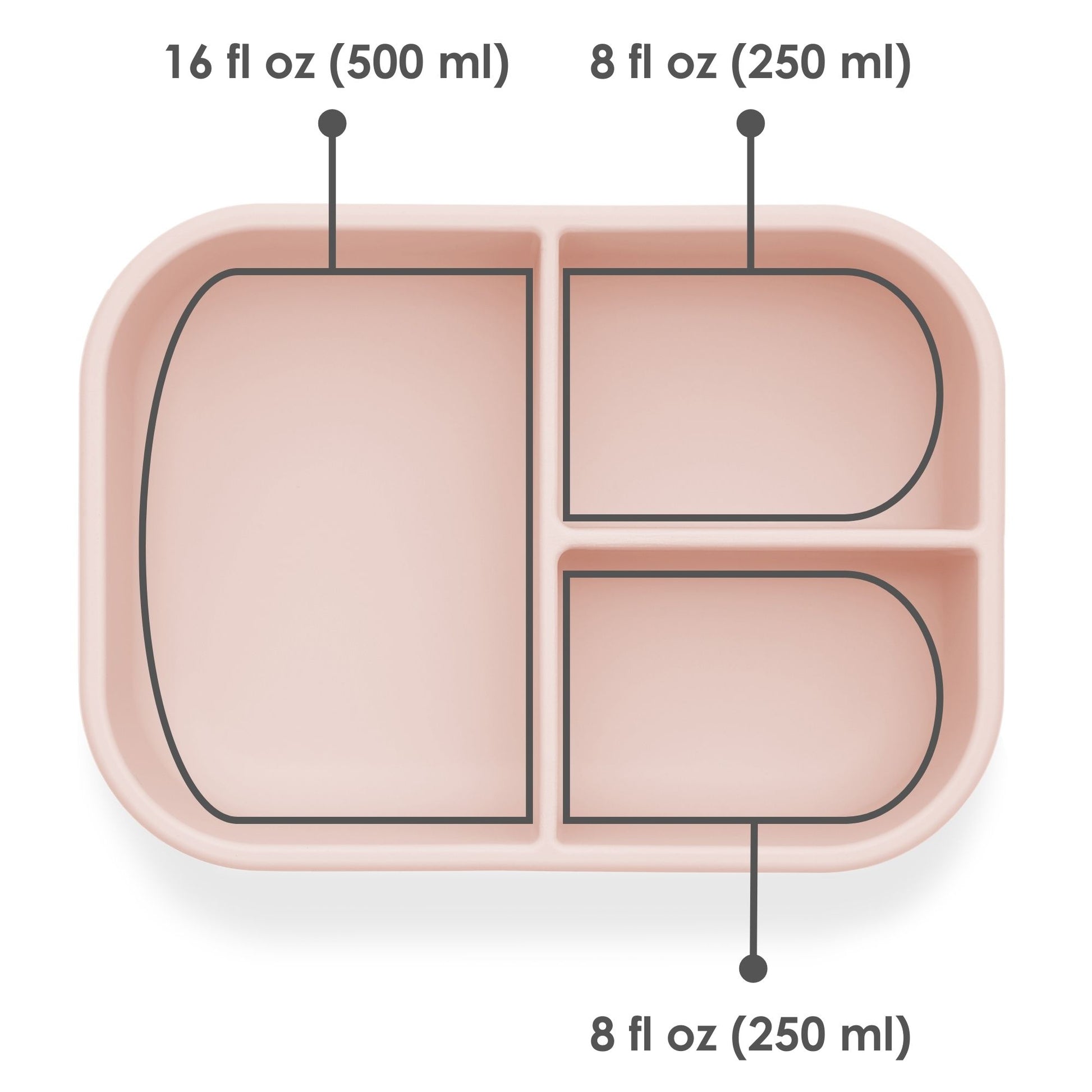 Ali+Oli Reusable Silicone Bento Box - 3 Compartments - Leakproof (Blush)