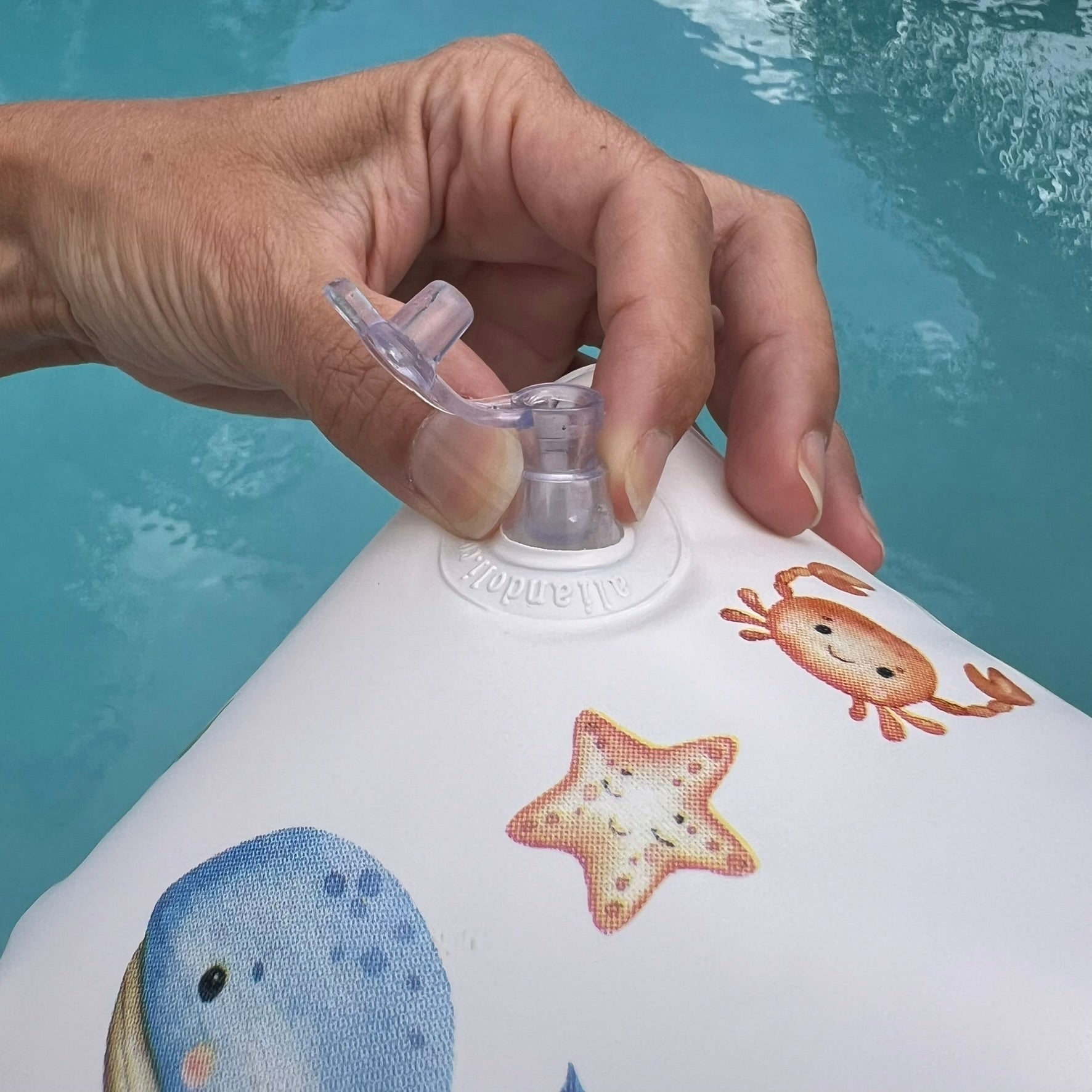 Our Ali+Oli Arm floaties for kids are designed to delight your child. Engineered for durability and adorned with soft Scandinavian colors and an enchanting design, these swim arm bands with our adorable undersea print are destined to be cherished throughout the swimming season.